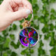 Modern Floral Abstract Art Red Blue Pattern #12 Premium Round Keychain