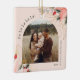 This modern floral arch fa la la la la ceramic ornament has a whimsical and elegant design featuring vibrant watercolor illustrations of red and pink poinsettias and delicate winter greenery. With chic botanical elements like pine, holly, and winter berries, the card’s colourful palette, including dusty rose and gold accents, adds a boho touch to a modern holiday aesthetic. This festive December design blends a light, whimsical vibe with a floral theme perfect for the Christmas season.