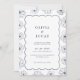 Our wedding invitation features a stunning floral art wave frame in shades of blue, embodying elegance and romance. Delicately crafted blooms and foliage cascade along the edges, creating a graceful wave-like pattern that captivates with its intricate details. Contemporary yet timeless, this design appeals to those who appreciate artistry and seek to enchant their guests with a touch of natural beauty and modern flair.