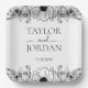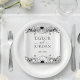 The centerpiece of the plate features the names of the couple in a sophisticated mix of classic serif and flowing handwritten script. Below the names, your wedding date is presented in a clean, professional font. The timeless black and white monochrome palette ensures these plates will complement any wedding theme, from a chic urban loft to a classic outdoor ceremony. These high-quality plates offer a practical yet beautiful way to maintain a cohesive design across your entire reception.