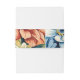 A modern floral wedding invitation belly band featuring a bold botanical pattern in blue and orange blooms.