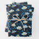 Modern Floral Dark Blue Poppy Pattern Wrapping Paper Sheet