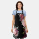 This modern floral apron boasts a stunning design of pink and purple peonies set against a black background. Offered in three sizes, it is ideal for adults, teens, and children. The apron includes a sublimated neck strap and an adjustable waist tie for a snug fit. Made from 100% polyester, the apron is machine washable, ensuring easy maintenance.