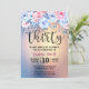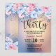 Beautiful Modern 30th Birthday Invitation. Design features of watercolor background with gold glitter and floral elements in pink and blue.