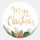 Modern floral gold script holiday sticker