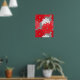 Poster in a modern take on a traditional Japanese floral kimono print - stylized flowers in deep Chinese red, coral red, and white on a dark graphite grey / grey background