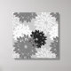 Wrapped canvas in a modern take on a traditional Japanese floral kimono print - stylized flowers in shades of graphite and light grey / grey, black and white on medium grey background