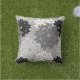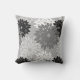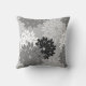 Modern take on a traditional Japanese floral kimono print throw pillow - stylized flowers in shades of graphite and light grey / grey, black and white on medium grey background