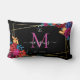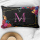 Modern Floral Monogram Black Wedding Lumbar Pillow