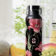 Modern Floral Monogram Pink Black Large Poppy Water Bottle