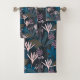 Modern Floral Navy Plants Pastel Pink Flowers Bath Towel Set