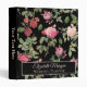 A gorgeous floral pink rose design. This stylish modern design features pink roses with green leaves on a striking black background. Perfect for planning a wedding or bridal shower or as a recipe binder.