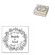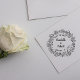 This "Save the Date" rubber stamp features a flower frame with couple names and date.