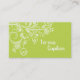 Modern floral swirls & birds light green business card template, featuring white swirls and dotted lines with leaves, flowers and birds on hanging rings on light green background. This cute, modern design has a retro feel to it and is perfect for personal or professional use.