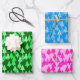Modern Flower Christmas Trees, Green, Blue, Pink Wrapping Paper Sheet