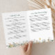 This elegant floral celebration of life program blends timeless design with heartfelt personalization to create a meaningful printed keepsake for memorial services. The front features a circular photo frame surrounded by soft watercolor florals in muted tones of white, blush, green, and gold, with customizable name and date fields beneath the editable phrase “In Loving Memory.” Inside, a clean layout provides organized sections for the order of service, obituary or life overview, and acknowledgments on the back, all beautifully accented with matching floral illustrations along the bottom edge. Designed for clarity and emotional resonance, this funeral program offers space for personalized headings, thoughtful tributes, and messages of gratitude. Perfect for traditional funerals, memorial services, or celebration of life events, this printed program serves as both a service guide and cherished memento for family and guests. Its soft, botanical design and structured layout bring comfort, warmth, and lasting tribute to the memory of a loved one.