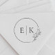 Custom-designed wedding monogram stamp featuring modern line drawing style circle and foliage design.