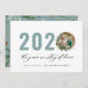 Modern minimal foliage wreath Merry Christmas 2020 the year we stayed home script holiday Christmas card. Hand painted eucalyptus, minimal foliage and modern rustic rattan wreath give this holiday card a luxurious feel. In classy greens, browns and greys.