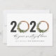 Modern minimal foliage wreath Merry Christmas 2020 the year we stayed home script holiday Christmas card. Hand painted eucalyptus, minimal foliage and modern rustic rattan wreath give this holiday card a luxurious feel. In classy greens, browns and greys.