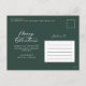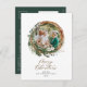 Modern minimal foliage wreath Merry Christmas script holiday Christmas postcard. Hand painted eucalyptus, minimal foliage and modern rustic rattan wreath give this holiday card a luxurious feel. In classy greens, browns and greys.