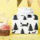 Minimalist European folktale Scandinavian black Christmas tree pattern illustration design, with running moon fox and running moon rabbit hare. Scandinavian yuletide Christmas whimsical illustrated pattern. Scandinavian Christmas wrapping paper.