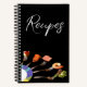 This modern-style hardback recipe notebook features foods on forks on a contrasting black background. "Recipes" is written in script however you can personalize it with your own text and pick another font. The design is a template so if you prefer another photo, use the editor to remove the existing photo, then add your own. A recipe notebook would be a thoughtful gift for him or her.
