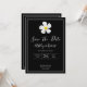 A simple modern design with a symbolic flower, white script type and a white outline on formal black. The backside has all the wedding details, personalize the front and back to the details of your special day. A classic look for a formal affair. Matching style on Bridal Shower, RSVP, Save the Date and more. The Hawaiian Lei flower, Plumeria is a symbol of "new beginnings".