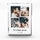 This simple yet ultra modern photo block features four of your favourite personal photos in a unique, layered look photo grid. The black and white design features your family name in elegant, trendy handwritten script typography, and has a spot for the year established in a coordinating sans serif font.