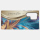 Modern Fractal Blue Gold Handwritten Name Case-Mat Samsung Galaxy S22 Ultra Case