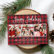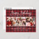 Modern Fun Calligraphy Script Happy Holidays 3 Photo Holiday Postcard - Red Plaid