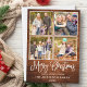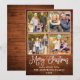 Modern Fun Calligraphy Script Merry Christmas 4 Photo Holiday Card - Rustic Country Wood