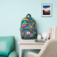 Fun and bright multi-colour backpack personalized with a monogram, name or initials in your choice of font styles, size, colour or placement or delete the sample text to leave the area blank in EDIT. ASSISTANCE:  For help with design modification or personalization or if you would like coordinating items, contact the designer BEFORE ORDERING via the Zazzle Chat MESSAGE tab below or email makeitaboutyoustore@gmail.com.