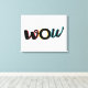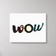 Modern, playful, bold graphic design of a word "wow" in red, yellow, blue colours. Handwritten, fun, lively brush stroke style typography.