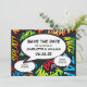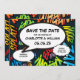 A fun, cool and trendy comic book inspired save the date card that puts the wham, zap, pow into your wedding date announcement. The reverse features a matching comic book pattern which you can replace with your own image or photo. Designed by Thisisnotme©