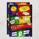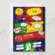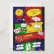 Celebrate your bachelor or bachelorette party bash in style with this aesthetic fun modern comic story book. The invitation is colourful and tells a retro comic story with speech bubbles. It shows a story with rings, party, las vegas, cards, gambling, party time, everything stays in Vegas and a wedding couple silhouette. Personalize it with your details, your monogram for your extraordinary cartoon celebration.