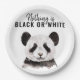 Modern Funny Panda Black And White With Quote Paper Plate