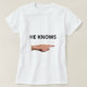 Modern He Knows funny text & pointing hand T-Shirt. Text can be personalized.