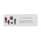 Cute and funny hand drawn family winter holidays greetings return address label featuring three silhouettes, a house, and a dog.