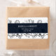 Designed to match our Modern Garden floral wedding collection, this Elegant and contemporary wedding return lable feature a background of outlined flowers in white and black. Your details are displayed in white against a midnight blue rectangular element. A modern yet timeless design that's perfect for formal celebration in any season of the year.