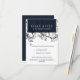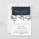 Designed to match our brand new Modern Garden floral wedding collection for 2019, this Elegant and contemporary wedding Rsvp feature a background of outlined flowers in white and black. Your wedding details are displayed in white against a midnight blue rectangular element. A modern yet timeless design that's perfect for formal celebration in any season of the year.