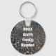 This family reunion keychain features a modern abstract ackground to support your personalized family name and reunion year. The black and white background features a piece of black and white fabric dotted with silver threads. Quickly personalized all text for your special gathering.