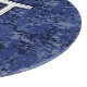 A silver chrome like Gemini zodiac symbol applique on a navy blue digital camouflage design texture print background. A modern urban racy design for a great custom birthday gift idea.