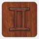 Modern Gemini Zodiac Symbol on Mahogany like print Square Sticker