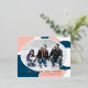 Unique, trendy and decorative seasonal Christmas Holiday greetings card featuring a modern geometric circles pattern in teal blue, coral blush pink and white colours. With room to customize or personalize with a photo, family name or names, and text of your choice. And a customizable season greeting poem on the backside of the card, including your return address, city, zipcode and state.