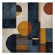 Add a bold statement to your space with this modern geometric abstract artwork. Inspired by mid-century design, this piece features a harmonious blend of navy blue, mustard yellow, burnt orange, and beige tones arranged in a striking grid of circles and rectangles. The textured brush strokes and layered shapes create depth and movement, making it a perfect centerpiece for contemporary interiors.