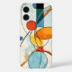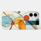 Beautiful abstract design featuring geometric patterns of circles and lines in calm blues, oranges and yellows. While a modern design, it also has a retro vibe to it for a design that goes anywhere!