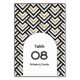 Elevate your wedding decor with this chic modern geometric table number card. Featuring bold black and white patterns accented with shimmering gold details and elegant typography, this design is perfect for contemporary weddings that embrace sleek and stylish aesthetics. Personalize with the couple’s names and table numbers to create a memorable and cohesive wedding theme. Ideal for minimal and modern wedding celebrations.