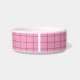 Modern geometric monochrome grid pattern bright pink customizable pet bowl gift cute accessory. Ideal gift for the pet owner in your life, personalized with the pets name in a modern check pattern.
