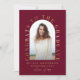 Geometric modern typography elegant burgundy and gold effect photo arch graduation announcement card.