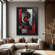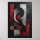 A bold abstract composition exploring the intersection of circular and rectangular forms. Vibrant blocks of black, red, and gray collide in a sophisticated visual dance, perfect for contemporary and high-design spaces.